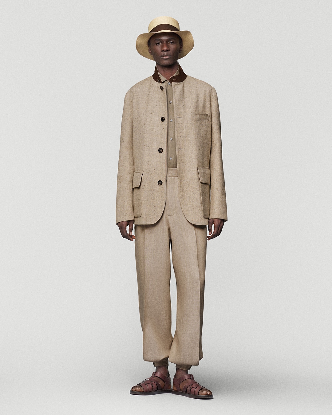 標誌性 Spagna 外套柔軟如開襟針織外套,挺拔有型、舒適實穿,是 Loro Piana 的雋永經典之作。